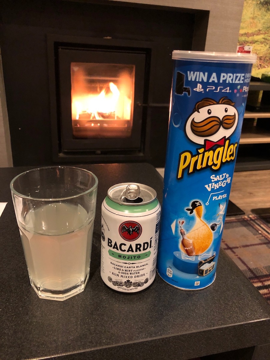 When drinking Mojito out of a can always remember it pairs really well with Pringles. Only the best when lounging by the fire after a long day at the pool!
