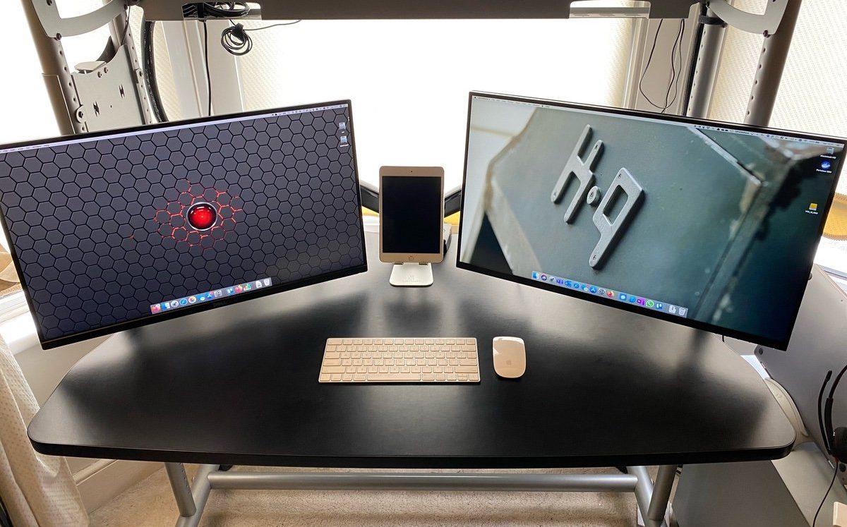 For years my setup remained an Apple Cinema Display plugged into either a desktop or laptop. Since I’ve been in London I bought a second Dell 27 inch monitor. That way I can have my work laptop on one screen and my home computer on and other at the same time. It made for an extremely cluttered desk. It did not leave me a lot of surface area to do anything. With all this extra working from home this season and now the indefinite working from home due to the virus it finally dawned on me to take some sort of action.
