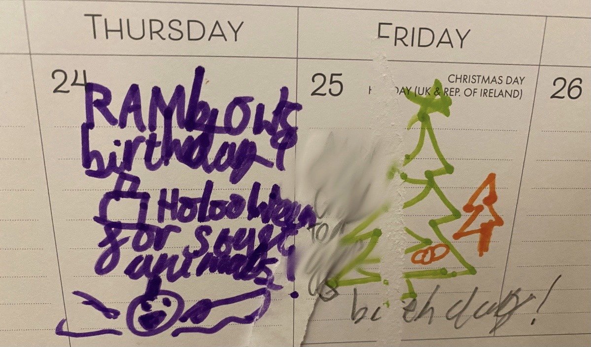 I was reminded at dinner tonight that Christmas Eve or more specifically 24 December is Rainbow’s birthday. It is not widely known rainbow is another name for T’s lovie money also know as Dee Dee. I think originally rainbow’s birthday was on Christmas however that date got changed recently.