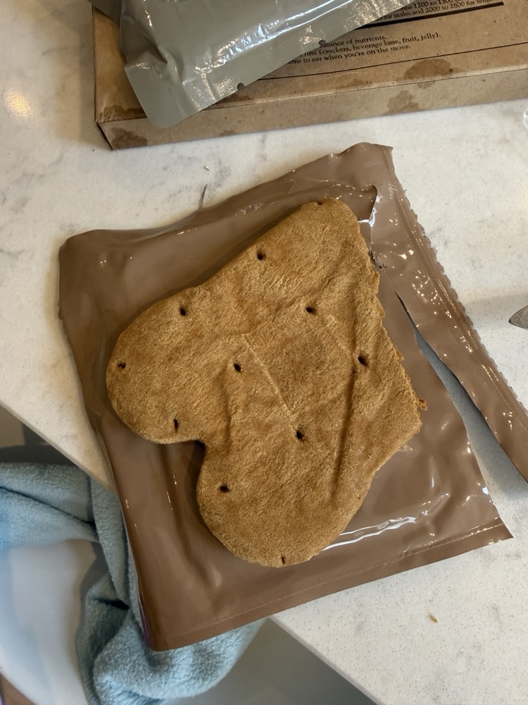 Still, curiosity got the better of me. I opened one up, planning to cook it just for fun. I didn’t go as far as heating the entrée. Using the built in heating element would have required to goto the garden outside but I tried the shortbread cookies and the flatbread. The cookies were perfectly fine, and the flatbread, other than a faint aftertaste, was totally edible. No mold, no weird smell, just “slightly” vintage bread. I may open another one and try heating it up someday soon.