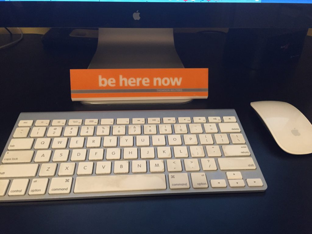 Be here now is a fascinating concept that can be applied to work life as well as personal life. It simply is to remind me to be in the moment and avoid distractions. At work that means focusing on a meeting or a conversation and not multi-task. It means paying attention and giving what you are doing your undivided attention. At home it means to not be distracted by work. To me it means that I want to leave my phone on my desk or if i have to in my pocket when i get home and not be distracted by it or what it is alerting to me. I get so little time with my kids when I get home and almost no time in the morning during the week. I want to make use of that valuable time and not be distracted by my phone, work or anything else. There are days when I am. I am not perfect but i am getting better. I want to get to a place were i put my devices away in a drawer and not worry about stuff.