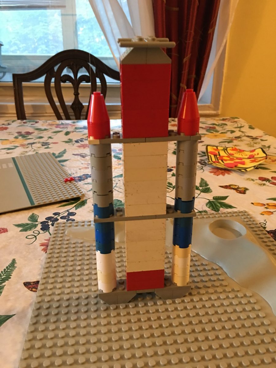 I think both mornings this weekend the girls played for almost an hour with the Legos and again for a little while in the afternoon. Yesterday I came home and our babysitters son was there for the day and he built stuff with all the Legos a little bit of Amelia’s help. Before bedtime the girls and I continue to play with what he had built and I built them rocket with two boosters on them. We must’ve played for about 45 minutes before we had to go brush teeth.