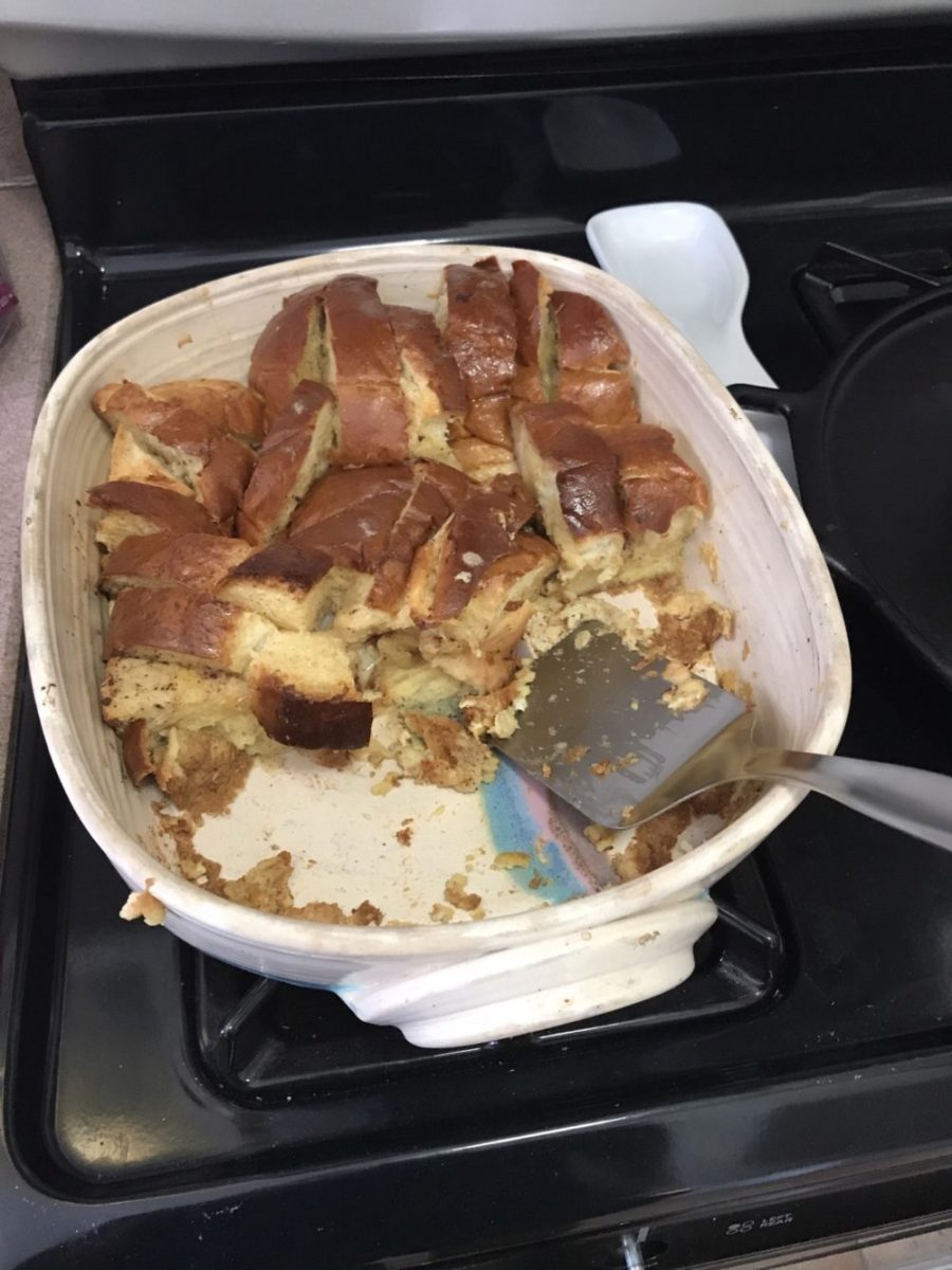 Before T got sick M had prepared a French toast casserole for brunch. With no company coming over food that would go bad we decided to make it anyway. T wasn’t eating obviously however M myself and A had the delicious French toast casserole.